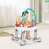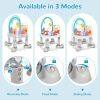 This versatile wonderland of play offers endless excitement and learning for your kids. With just a simple twist, it transforms effortlessly from a walker to a bouncing saucer, ensuring hours of fun. The 360° seat allows your child to explore their surroundings while sitting comfortably. Watch as their imagination soars on the S-shaped activity table, adorned with a delightful array of toys including a telescope, hippo, mirror, and more. Bring the magic to life with the included music box, creating a symphony of joy. By the way, it requires 2 AAA batteries (not included). It combines the separate playtime mat with the toy bar, providing a safe and soft space for your child to explore. Made with premium materials, it offers superior comfort and is easily hand-washable. With 3 adjustable heights, this activity centre grows with your child, catering to different heights and ages. Safety is this priority with a strong anti-collision structure and 4 protective corners to form a safe distance of 13 cm. It is suitable for kids of 0-2 years old, with a maximum load capacity of 15 kg.