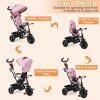 4-in-1 Baby Trike Kids Tricycle with Removable Canopy and Adjustable Push Handle-Pink