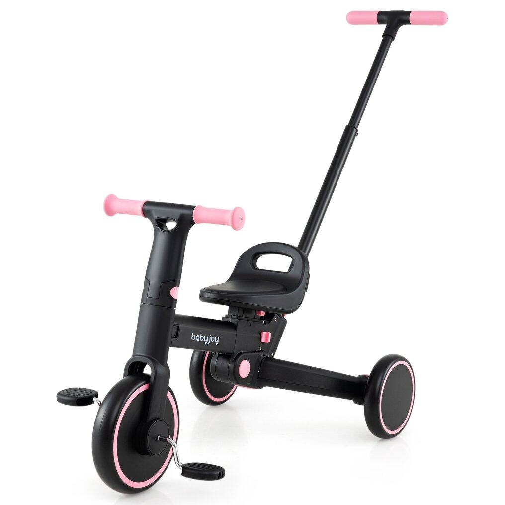 4-in-1 Foldable Toddler Tricycle with Push Handle with Adjustable Seat-Pink