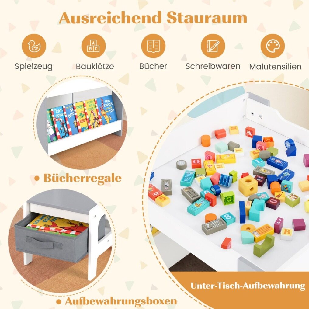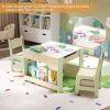 Ample Storage Space: The kids desk and chair set includes bookshelves for easy access to books, under-desktop storage, and convenient storage boxes located under each seat, keeping toys, building blocks, stationery, painting tools and other essentials organized.