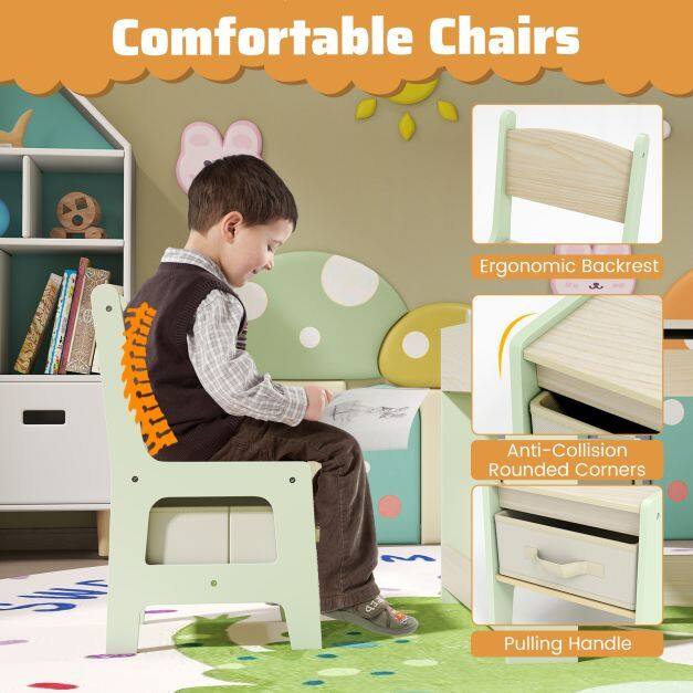 Crafted for Kids: The comfortable chairs are designed with ergonomic backrests to cultivate good sitting posture. Anti-collision rounded corners avoid scratches and bruises.