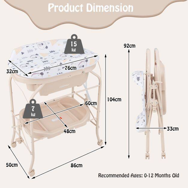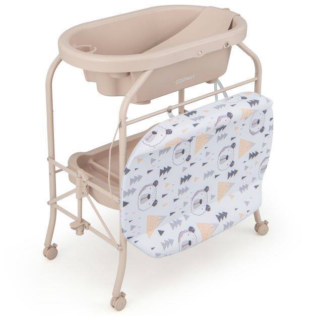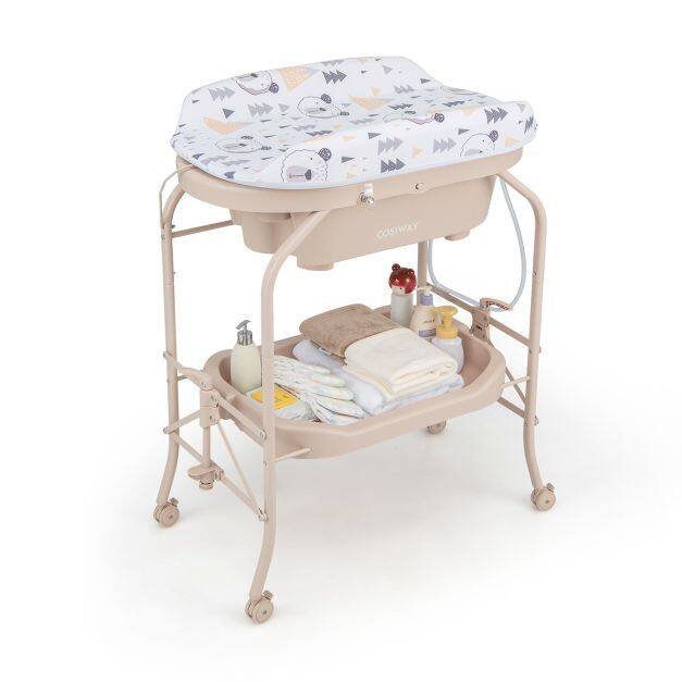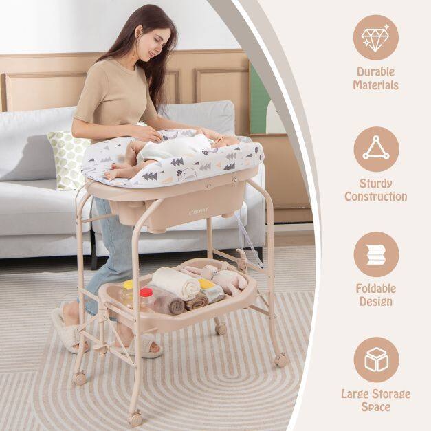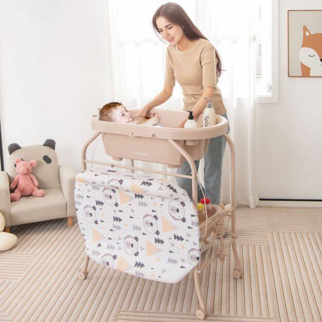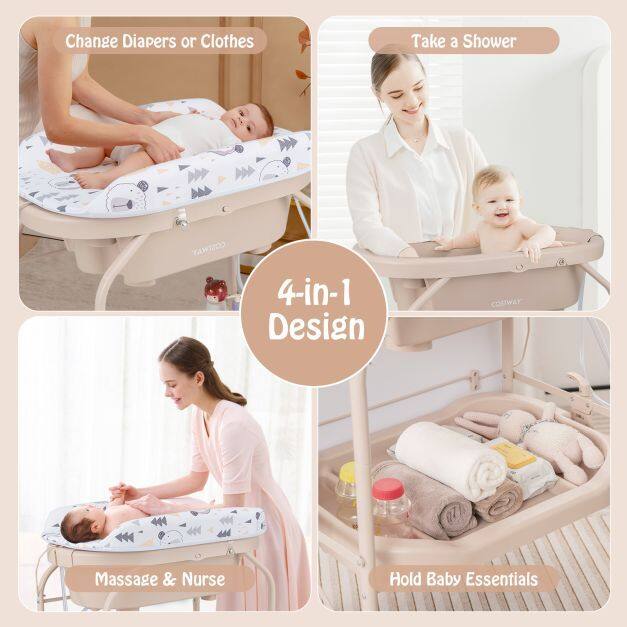 - Multipurpose Baby Changing Table: This baby changing table with bathtub allows you to use it to change diapers or clothes for your baby, massage and nurse your baby. By removing the changing pad, you can bathe the baby with the bathtub. Moreover, the large storage basket holds baby's belongings for easy access.