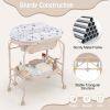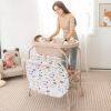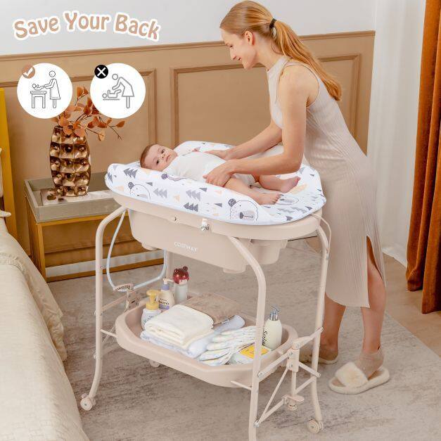 With a practical bathtub, this baby changing station is designed for versatility. It is suitable whether you use it to change diapers for your baby or bathe your baby. And the storage slots as well as the storage basket will hold baby's essentials for easy access. In addition, the reasonable height can effectively relieve your back pains from bending too much. Also, the thoughtful drainage system makes water drainage an easier thing. Most importantly, the selected materials that have passed ASTM and CPSIA certifications ensure reliability and security. When you do not need to use it, you can fold the diaper changing station and store it in the corner to save space.