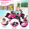 ● Interactive Design: Boasting a steering wheel, shifter, 2 light buttons with different lights and 2 rearview toy mirrors, this baby walker simulates the appearance of a racing car, satisfying your little one's curiosity for exploring and early learning. And the music makes the fun even longer. Requires 2 AA batteries (not included).