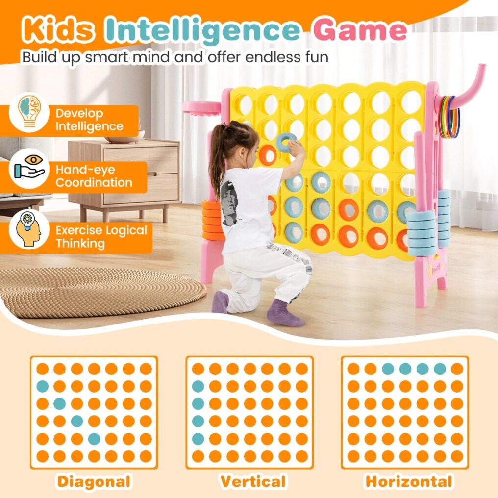 ● Ideal for Indoors and Outdoors: The 4-in-a-row connect game is suitable for various scenarios, such as the living room, kids' room, backyard, garden and more. As a result, you are able to enjoy indoor or outdoor fun times as your preference. And this jumbo 4-to-score giant game set is ideal for any gathering or party.