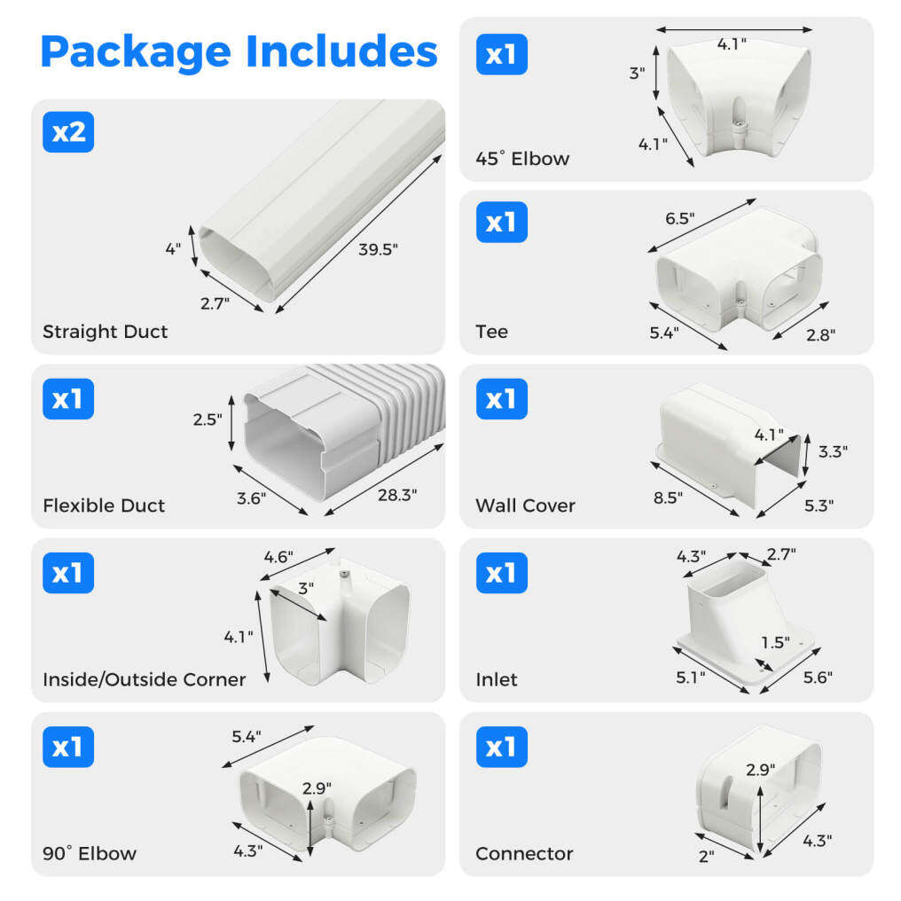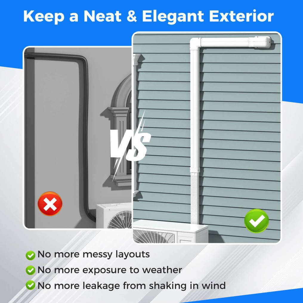 ● Parts Included and Wide Application: This PVC line cover set includes 2 x 39.5" straight duct and 1 x 28.3" flexible duct, and the 4" wide ducts are suitable for most split and central AC with capacities from 7000 BTU to 24000 BTU.