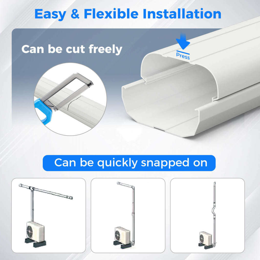 ● Easy and Flexible Installation: This line cover set comes complete with all necessary hardware and a detailed installation guide for a hassle-free setup. The straight ducts can be quickly snapped on and cut freely to meet customized needs.