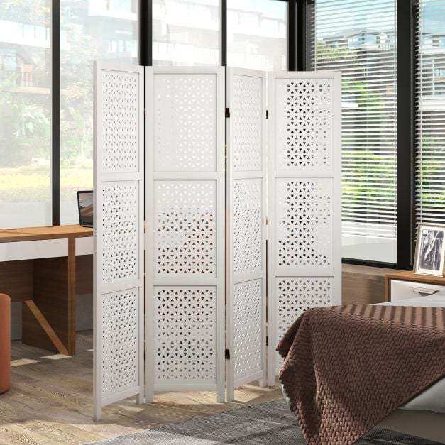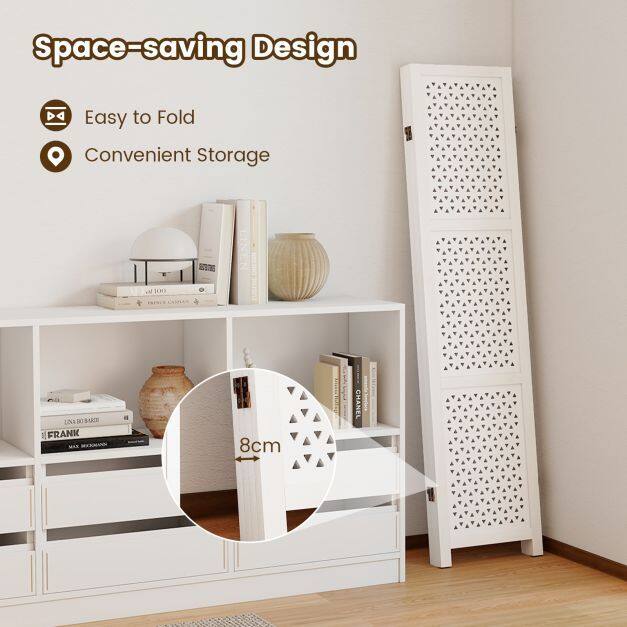 Elegant Craved Details: The folding room divider features exquisite triangular shape engravings, adding a touch of artistry and elegance to its function. The sophisticated design makes it ideal for living room, bedroom, dining room, balcony or office.