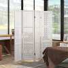 Equipped with 360° swivel metal hinges, the folding room divider can be configured in any direction, offering versatile options for privacy, sectioning off areas, or creating more intimate settings in your home or office. Moreover, the delicate triangular shape engravings add a touch of elegance and character to any room. Crafted from sturdy paulownia wood, known for its durability and wear-resistant, the room partition ensures long-lasting use. Fully assembled for immediate use, it sets the tone for a home of livable elegance.