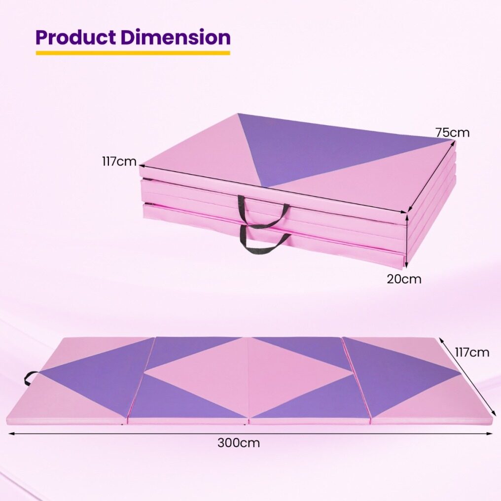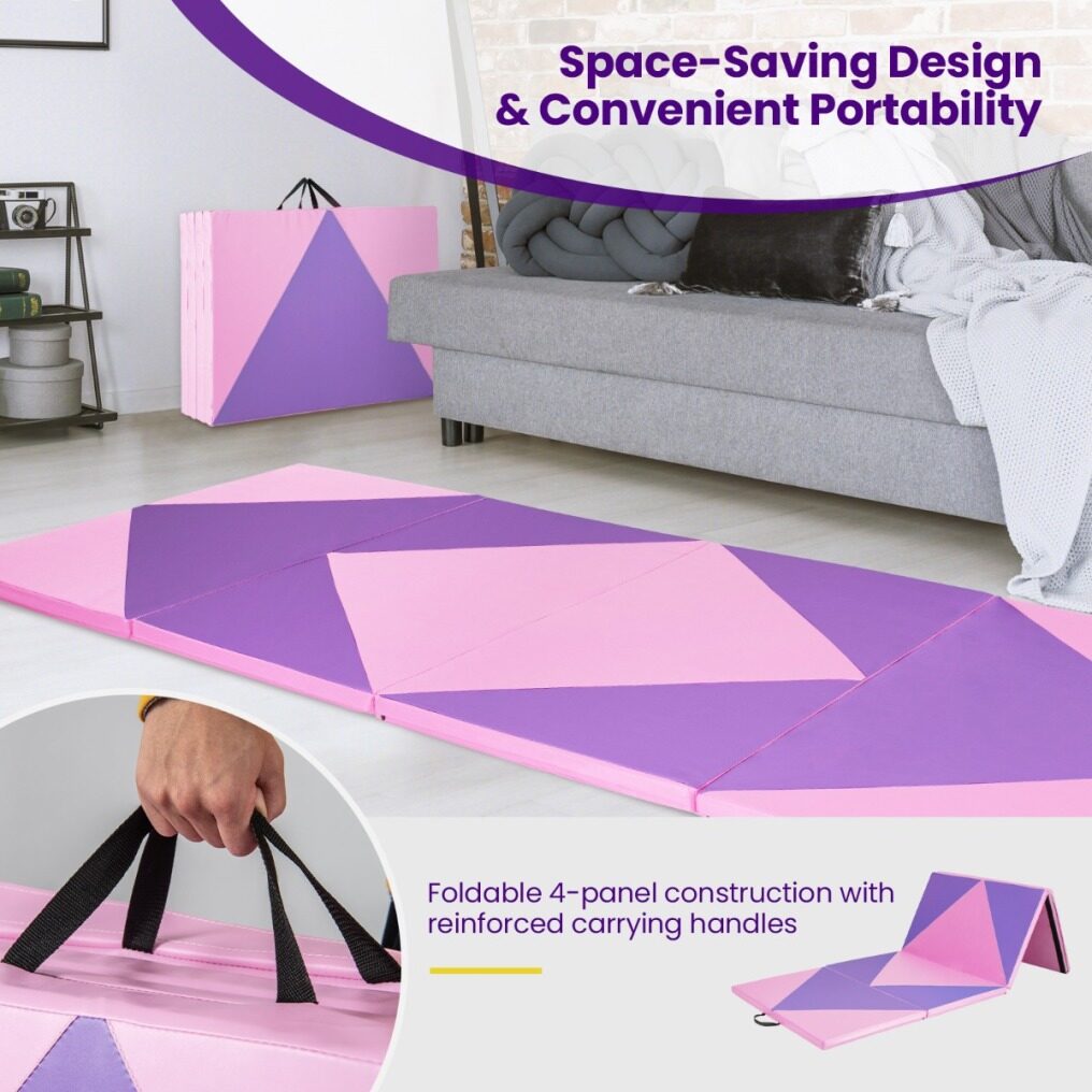● Space-Saving Design: This gymnastics mat features a foldable 4-panel design that allows for easy storage and space-saving convenience. Whether you're a professional gymnast, athlete, or fitness enthusiast, this versatile mat is perfect for various exercises, stretches, and routines.