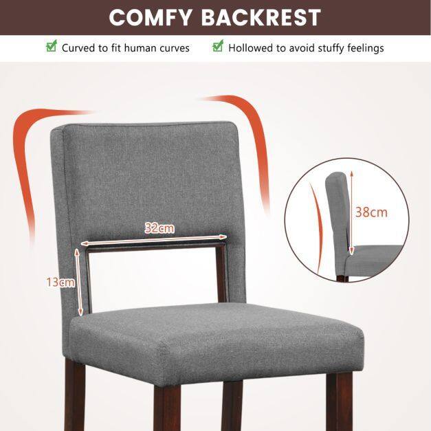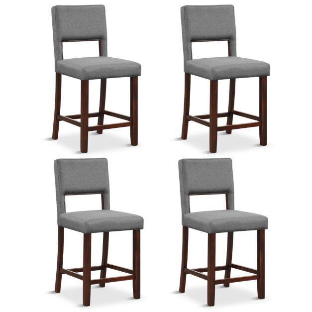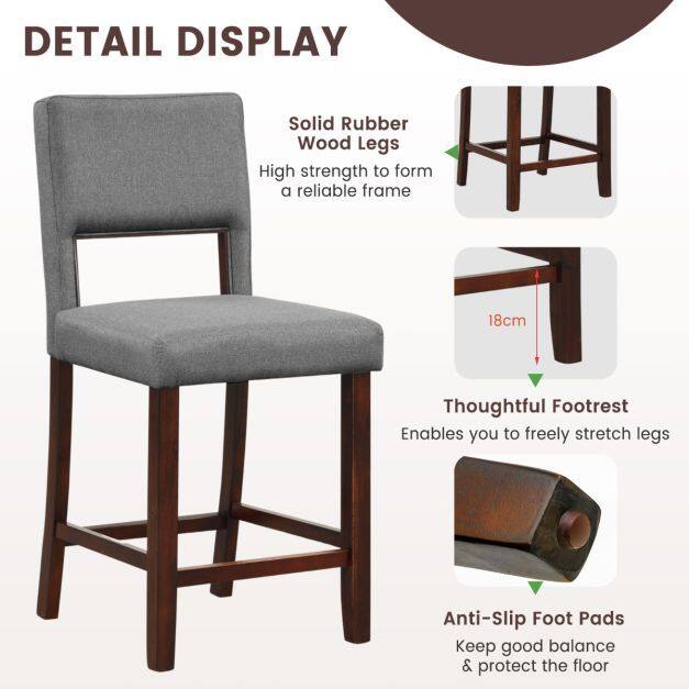 The bar chair set of 4 could better cater to your family and guests! Each bar stool features a hollowed back and a padded seat, allowing you to find the most comfortable sitting position. In particular, they are upholstered with premium linen fabric and sponge for a super cozy touch. With solid rubber wood legs, each counter-height stool could bear up to 400 lbs. Sit on the bar chair, stretch legs on the 7" high footrest, what a pleasure it is. As for the detail display, its anti-slip foot pads will protect the floor from being scratched, ensuring safe using in the kitchen, pub or cafe. Certainly, the whole assembly is easy. If you are looking for a bar chair set like this, do not hesitate to place an order!