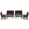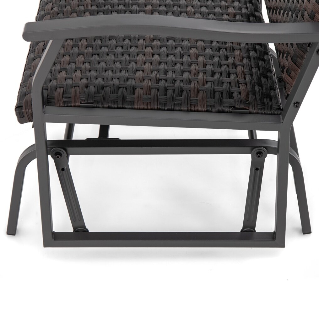 ● Woven Wicker Design: The seats of this patio gliding set are made of top-grade mix brown PE rattan which is well-woven, anti-fading and breathable. The wicker design perfectly adds a rustic charm to your outdoor space while ensuring longevity.