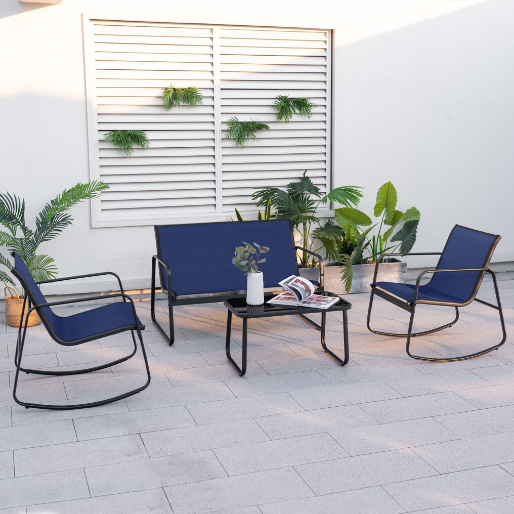 ● Ideal Relaxing Choice: This sturdy and safe 4-piece patio rocking set will be a nice option for outdoor relaxation. Whether in the backyard, poolside or balcony, it will always allow you to enjoy comfort and ease.