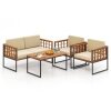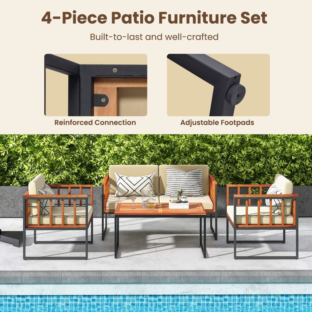 ● Thoughtful Design: This 4-piece patio furniture set is designed with reinforced connection and adjustable footpads, which effectively strengthen the overall structure and make the 4 pieces stand stably.