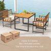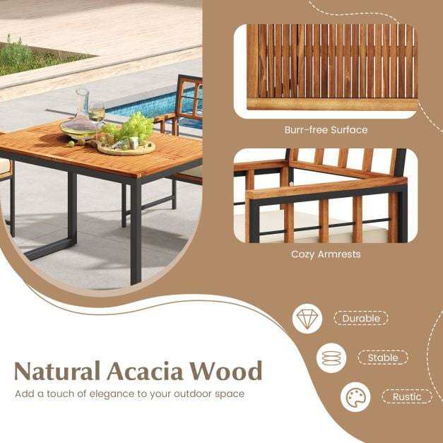 Premium Acacia Wood: This patio dining set is crafted from high-quality acacia wood, which is known for its natural beauty and long-lasting performance, ensuring your outdoor dining area remains the highlight of your backyard for years to come.
