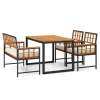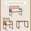 4-piece Dining Set: This outdoor dining furniture set includes 1 rectangular table, 1 loveseat and 2 armchairs, which is designed with warm wood tones and clean lines that complement your garden, patio or poolside decoration.