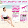 Comfy Chairs for Camping: These beach chairs boast wide armrests and an angled backrest for superior comfort, complemented by a storage pocket on the backrest to neatly store essentials like smartphones, beverages, snacks or books.