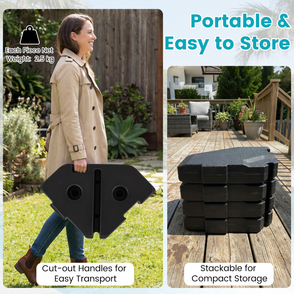 Portable & Stackable Design: Practical cut-out handles on every offset patio umbrella base plate allow the weights to be lifted and moved comfortably whenever your patio layout changes. Once emptied, the 4 plates stack together neatly, making seasonal storage simple and space efficient.