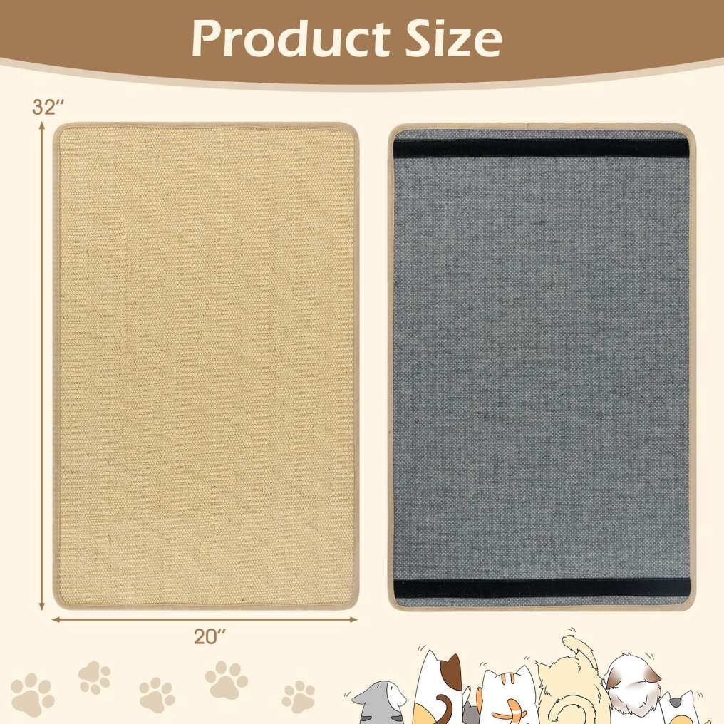 ● Easy Maintenance: Unlike normal cardboard that is easy to damage and leaves paper scraps, the sisal scratcher mats are easy to clean through a quick vacuuming or a simple shake outdoors, ensuring a tidy environment for both you and your feline friend.
