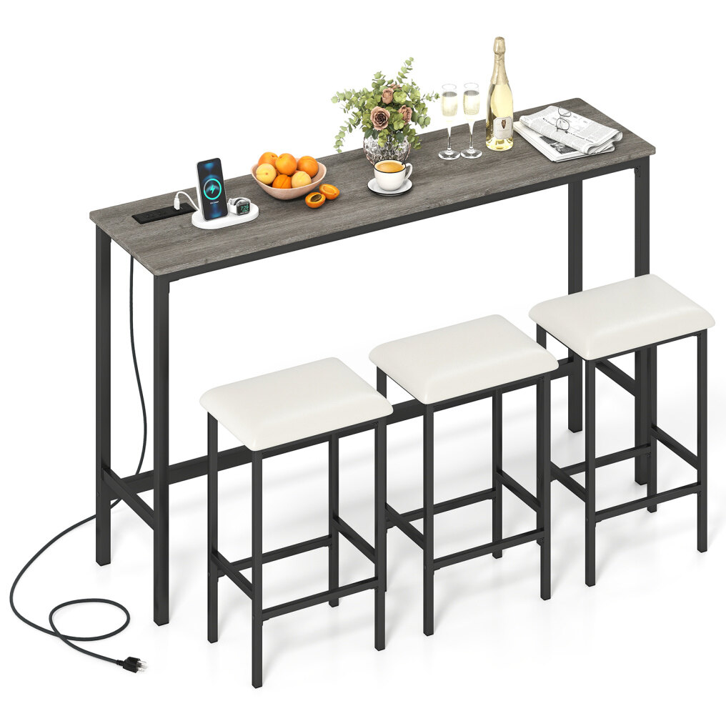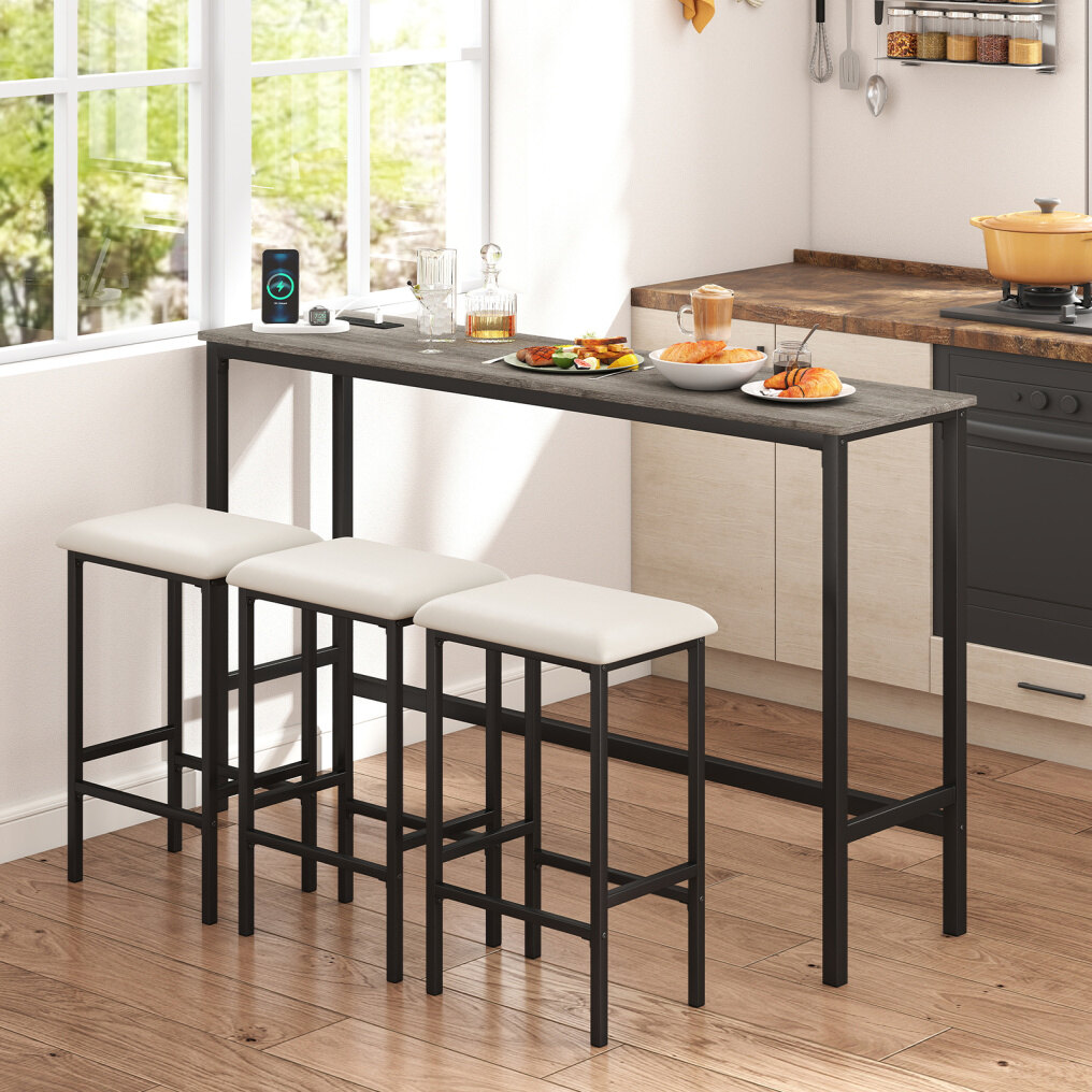 ● From Sofa Bar to Desk: Working well as a kitchen island table and chairs set, the slim design fits behind a sofa as a console bar for snacks. It also functions as a laptop desk with charging access. Meals and casual gatherings remain comfortable as well.