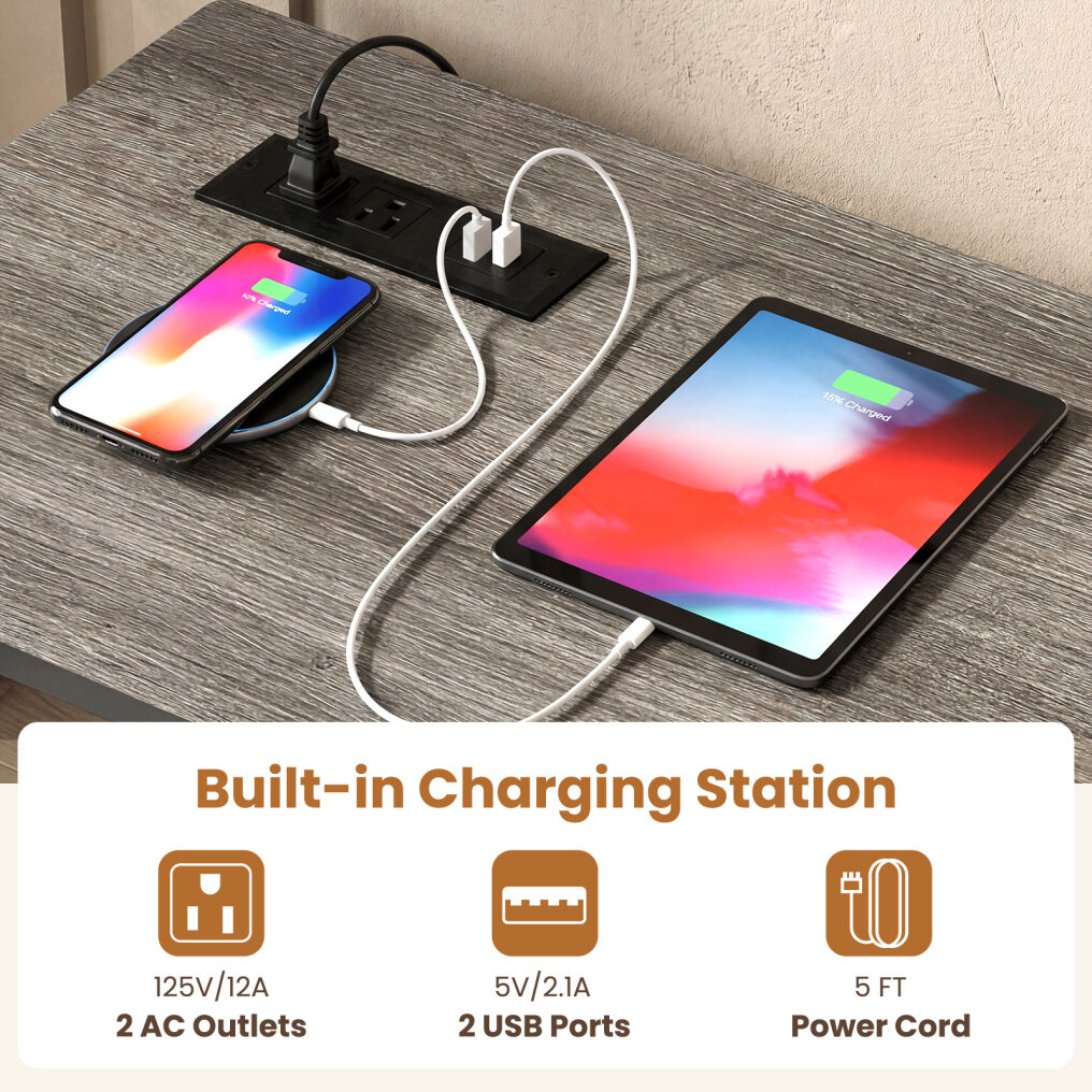 ● Plug-In Ready Convenience: The built-in charging station of this counter height table and chairs set includes 2 AC outlets (125V/12A) and 2 USB ports (5V/2.1A), so devices stay powered during meals or work.