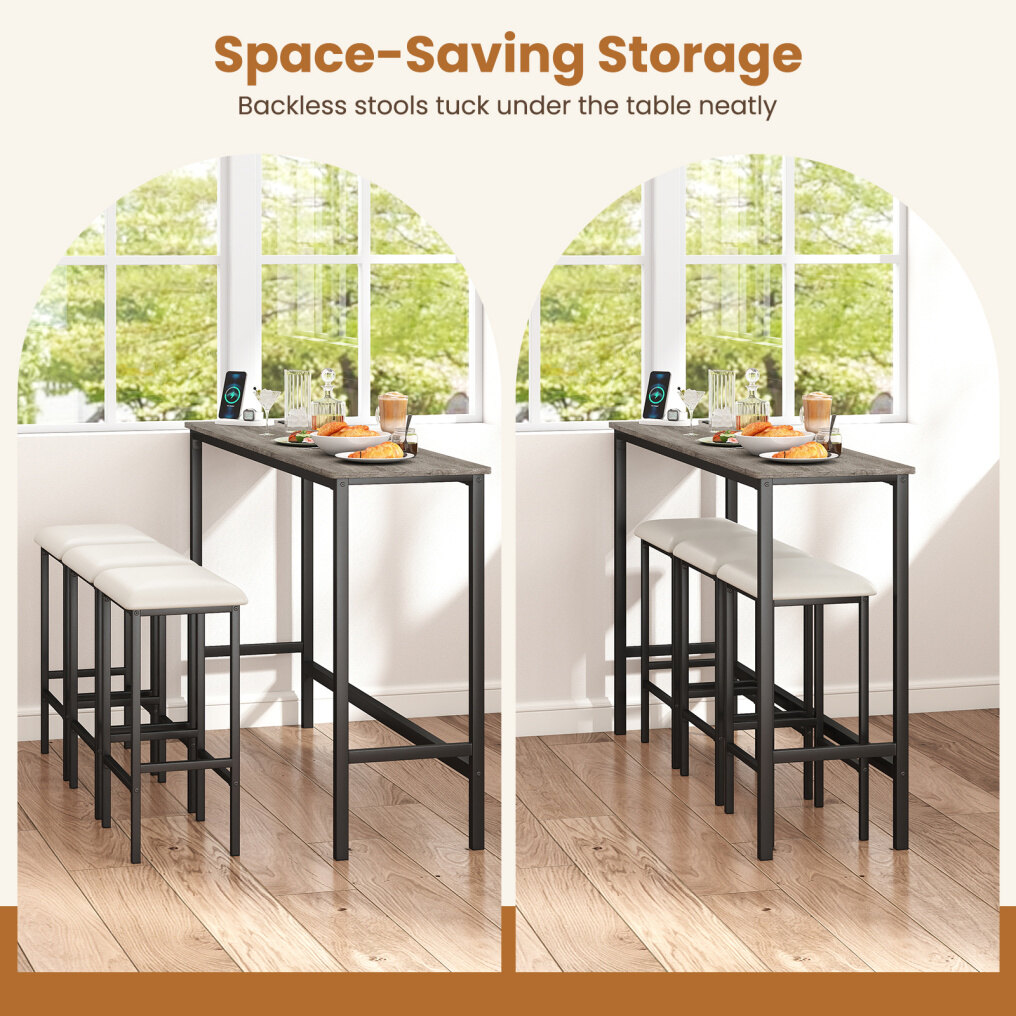 ● Seats Slide Out of Sight: 3 stools slide fully under the tabletop to keep walkways open when not in use. Therefore, this dining table set with stools suits apartments, tiny kitchens and cozy dining nooks without crowding.