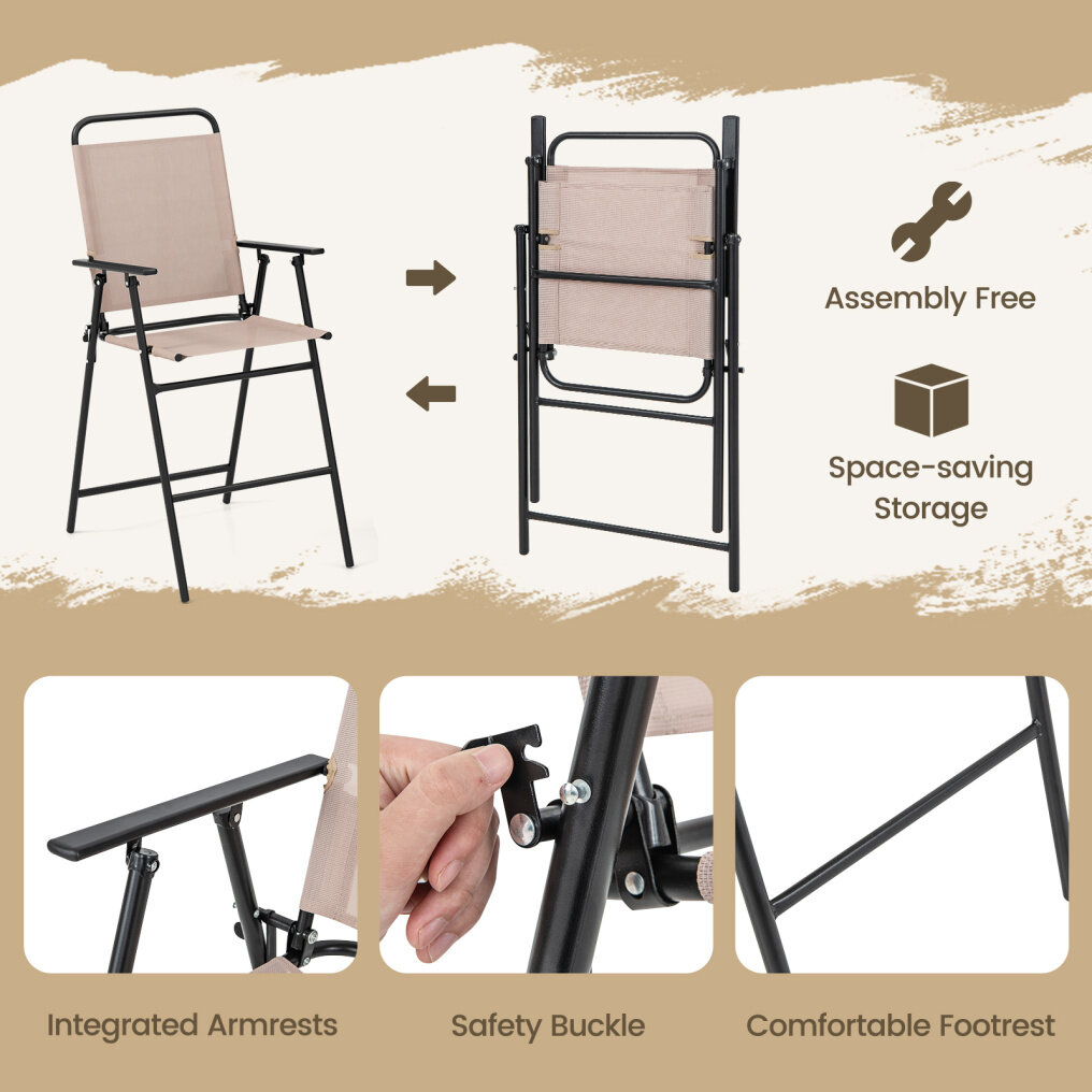 ● Folding Bar Chairs: The bar set includes 2 folding counter height chairs that save space when not in use. Remember to fix the frame with the safety buckle! Besides, the ergonomic chair with integrated armrests and comfortable footrests will give you true relax.