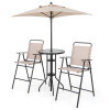 ● Weather-resistant Material and Durable Construction: The 4pcs patio set with umbrella is made from all-weather fabric and heavy-duty metal, which are built to withstand the elements, ensuring long-lasting use and year-round comfort.