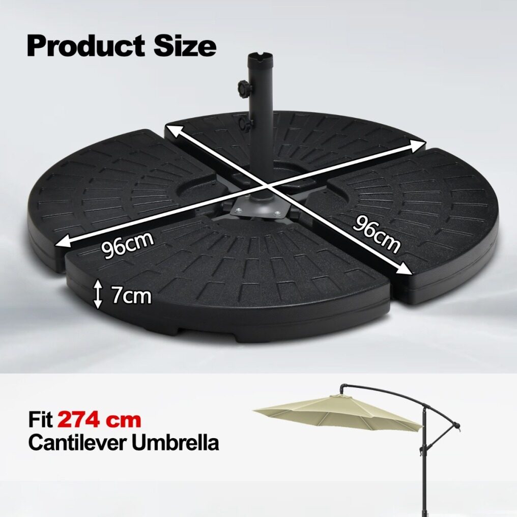 ● 4 Piece Base Weight Set: Equipped with four-piece removable fan-shaped umbrella base weights plates, the cross base (not included) of your cantilever umbrella can be better stabilized. Besides, they could be easily stacked to save space when not in use.