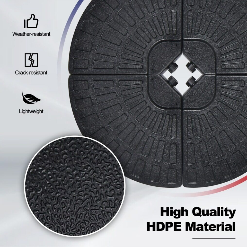 ● High Quality Material: Made of all HDPE material, the weighted umbrella base is weather-proof to adapt to kinds of outdoor weather conditions. Moreover, the premium material is crack-resistant and not easily deformed for long lifespan.
