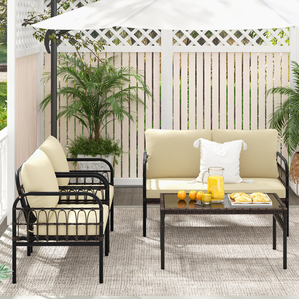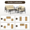 ● Flexible Combination: The 1 coffee table (36"L x 20"W x 17"H), 1 loveseat (48"L x 24"W x 29.5"H) and 2 armchairs (25"L x 24"W x 29.5"H) allow you to arrange this 4-piece outdoor conversation set in any configuration that suit your space.