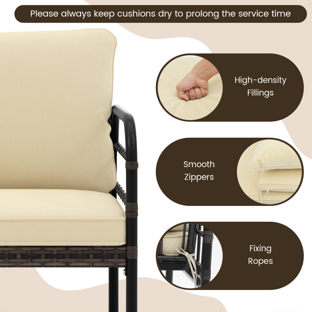 ● Born for the Outdoors: The sun-protective and colorfast PE rattan as well as the heavy-duty and rustproof metal frame endow this patio furniture set with better outdoor performance, ensuring durability and longevity.