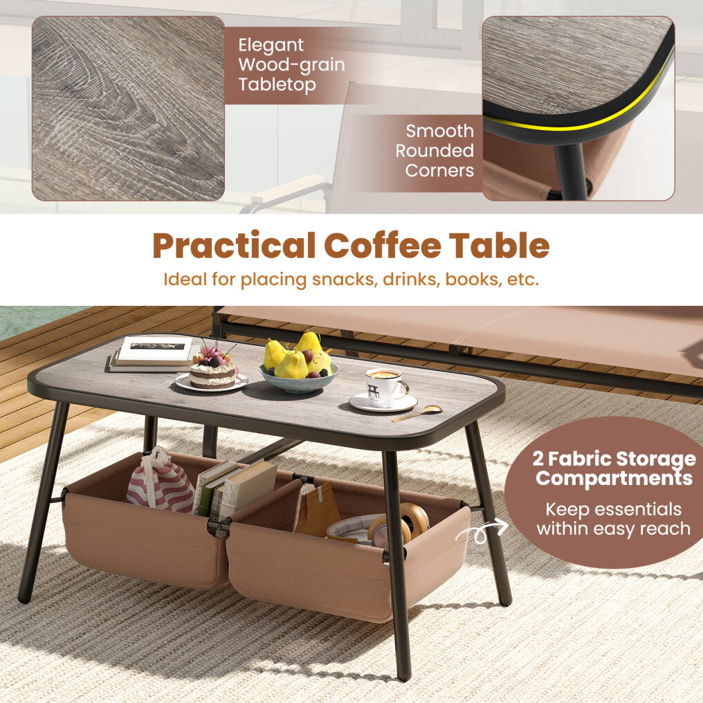 ● Practical Coffee Table: The rectangular 2-tier coffee table of this patio bistro set features a wood-like surface that adds a touch of rustic charm to your outdoor space. Additionally, you can use 2 bottom compartments as cat condos for versatility.