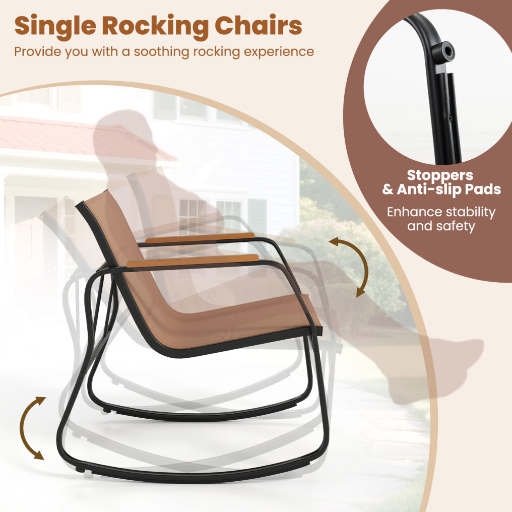 ● Rocking Relaxation: The single chair in this outdoor conversation set offers a soothing rocking motion, perfect for unwinding after a long day. Plus, these patio rocking chairs feature stoppers and anti-slip pads for enhanced safety.