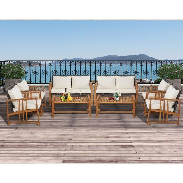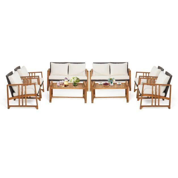 ● Well-Selected Material: The chair frame and coffee table are made of high-grade acacia wood, which brings you natural feelings and withstands long-time use. Plus, the hand-woven mix brown PE rattan makes the chairs elegant and durable for outdoor use.