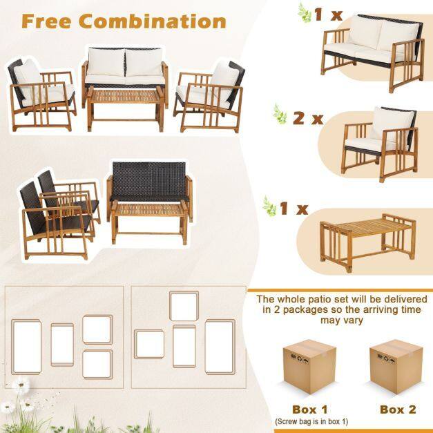 ● Free Combination and Wide Use: The 4 pieces can be freely combined as you need, and thus fitting different sizes of areas. There are various available occasions to use this patio set, including poolside, backyard, front porch, deck and so on. Note: Please avoid rain exposure for prolonged service life.