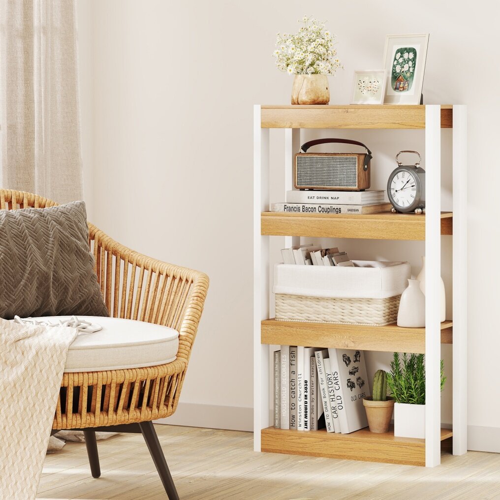 ● 4-Shelf Storage: The bookcase features 4 storage shelves to hold books, photos, stationery, plants, and decorations. Its seamless design makes organization effortless and transforms chaos into order.