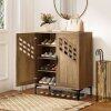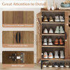 ● Safe and Stable Structure: The wooden shoe rack organizer comes with 2 anti-toppling devices that firmly anchor it to the wall for security. Stability is paramount, as this freestanding shoe cabinet is supported by heavy-duty metal legs.
