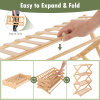 ● Foldable and Portable Design: This bamboo shoe rack can be easily folded down into a size of 27" x 15" x 5" (L x W x H) for space-saving storage. The folded shelf weighs only 8 lbs, which is easy to carry.