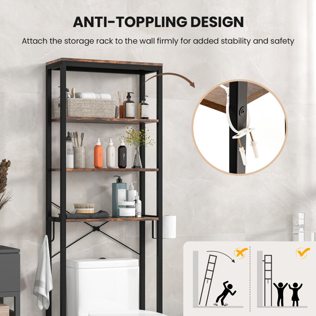 ● Large Storage Space: This over-the-toilet storage rack has four-tier open shelves, which is convenient for you to store towels, shampoo, shower gel, cosmetics and other bathroom necessities in an orderly manner. You don't have to bend over and get stuff under the sink anymore.