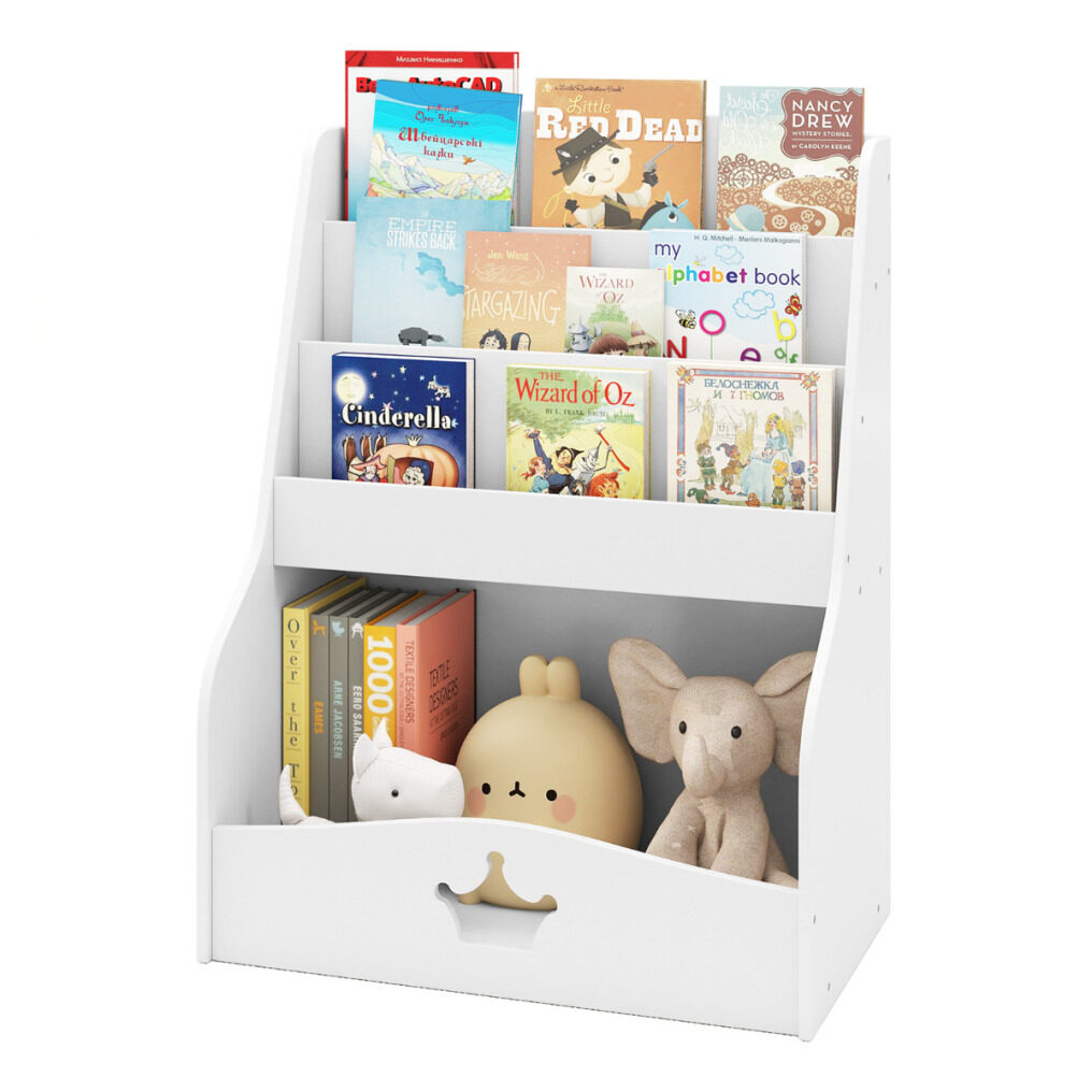 ● Kids-friendly Design: The kids bookshelf, at a height of 31.5", is easily accessible for little ones. Additionally, this display book rack comes with rounded corners and splinter-free surface to protect kids from bumps and scratches.