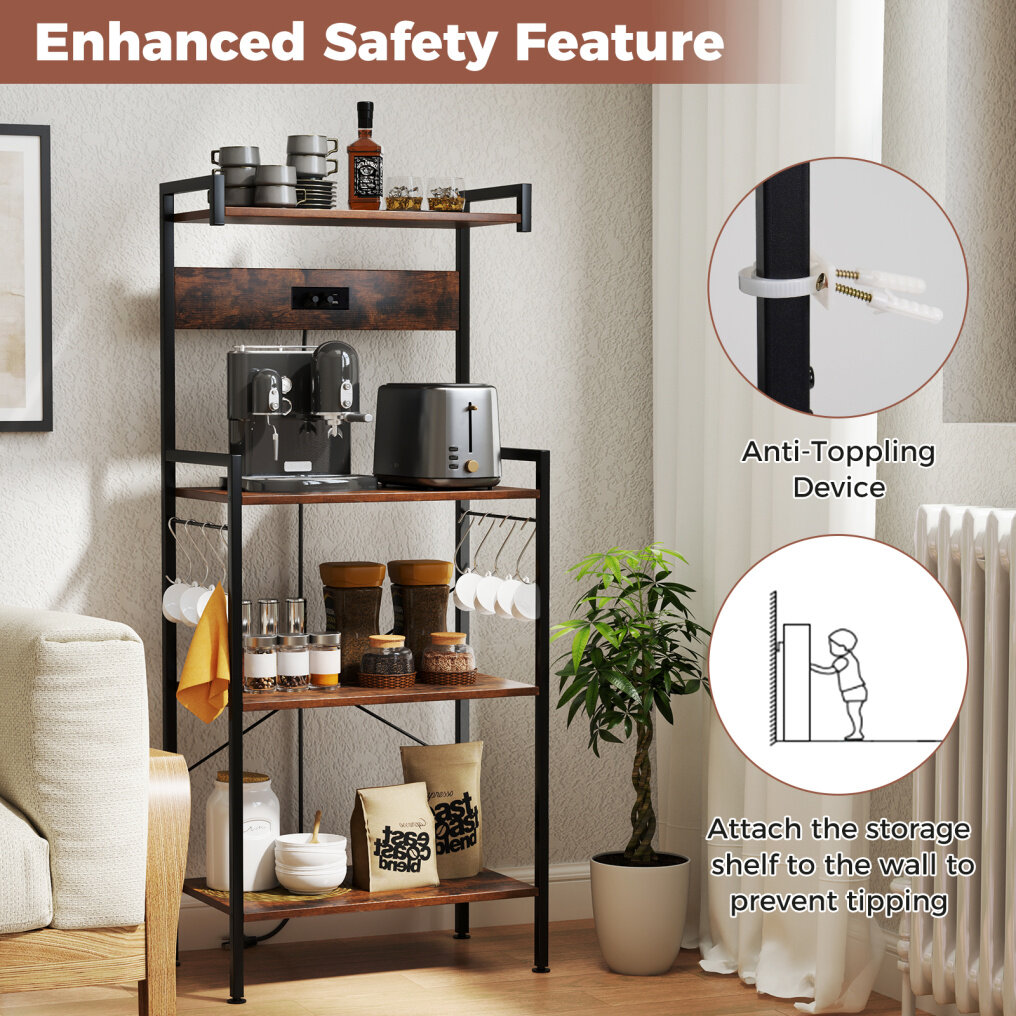 ● Built-in Charging Station: Equipping your space with modern convenience, this kitchen bakers rack features 2 AC outlets (125V/12A), 1 USB port (5V/2.4A), and 1 Type-C port (5V/3A). The 5 ft power cord enhances flexibility in placement, ensuring your gadgets are always within reach and fully charged.