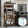 ● Ample Display & Storage Space: The coffee bar station offers a comprehensive solution with 4 spacious tiers and 8 S-shaped hooks. This allows you to easily keep your essentials, such as your microwave, coffee maker, spice jars, cookware, tableware, and decorations neatly arranged and easily accessible.
