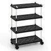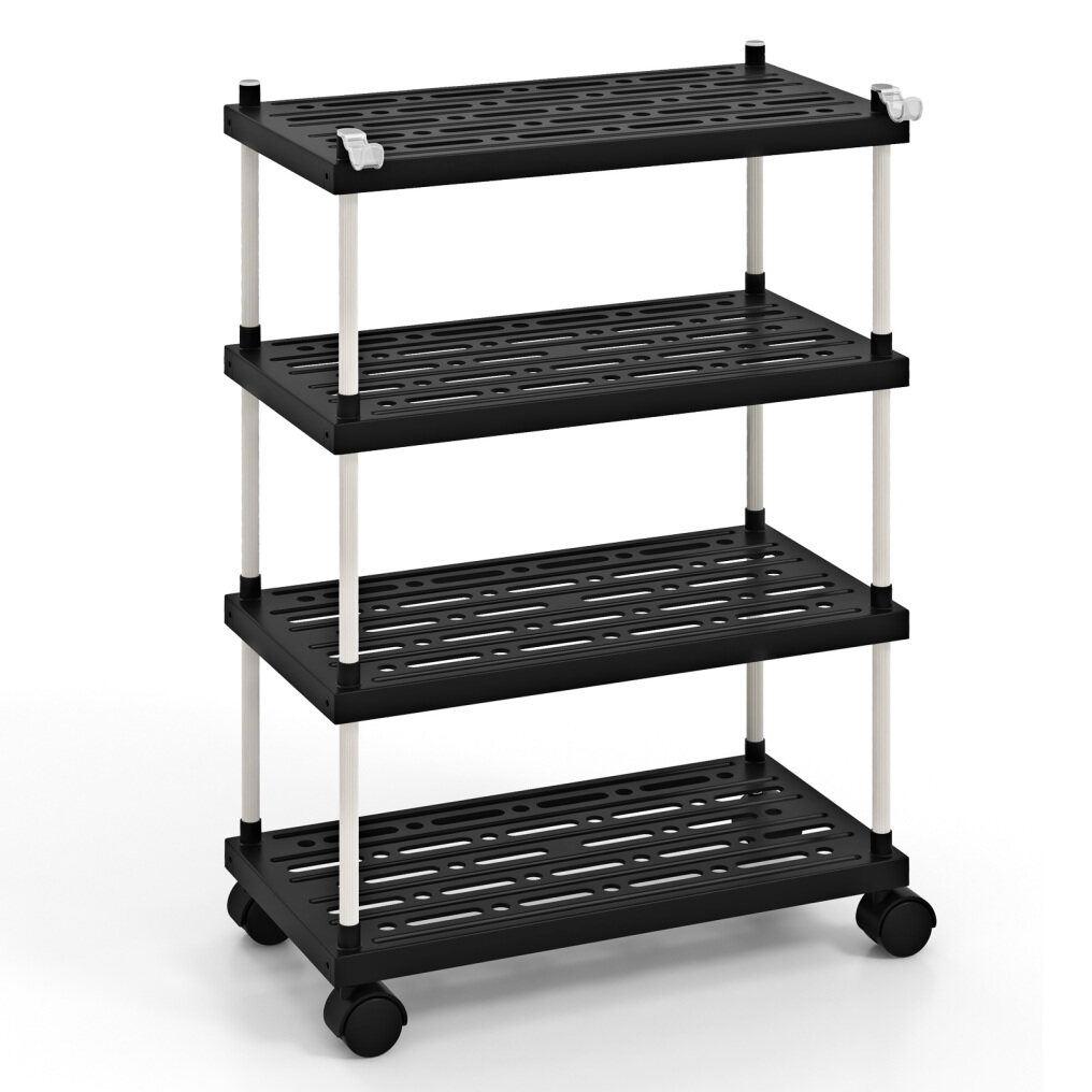 ● Easy Movement and Durable Frame: Equipped with 360°swivel wheels, our cart offers easy movement and maneuverability. Two of the wheels have brakes for added stability. The PET shelves and durable aluminum pipes ensure a sturdy construction, while the water permeable hole prevents water accumulation.