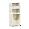 ● Thoughtful Details: Each basket in this rolling storage rack features a raised anti-drop baffle, so your essentials stay in place while in transit. The large openings allow easy access to your laundry, while the ventilated design keeps air circulating to prevent humidity from building up.