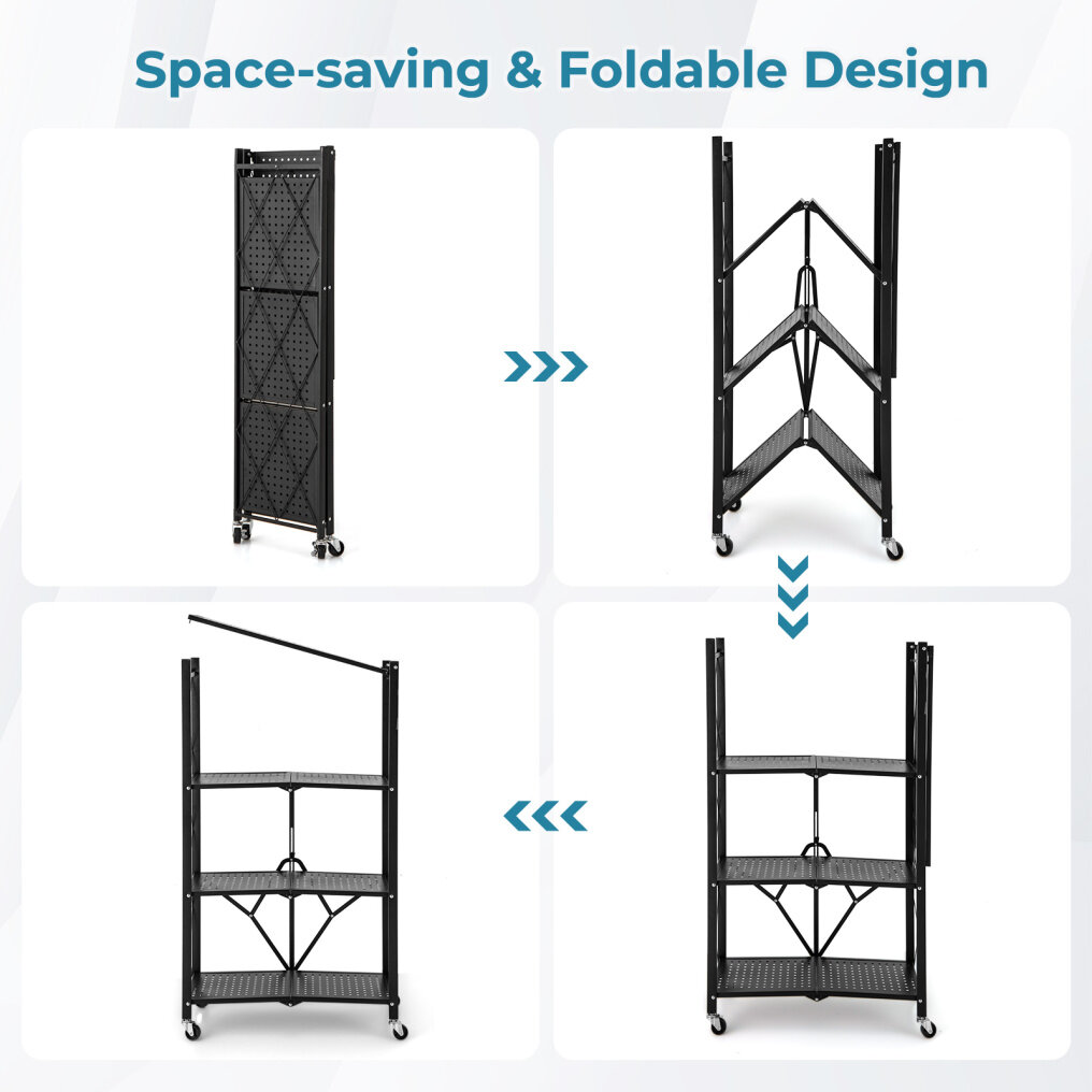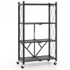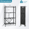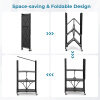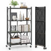 Supported by heavy-duty metal frame, the folding storage shelf presents great sturdiness and durability. Moreover, the anti-toppling kit supports a variety of items without bending or wobbling, ensuring your belongings are safely stored on the shelving unit. 4 flexible casters (2 lockable) glide smoothly and lock securely to provide both mobility and stability. When not in use, the shelving unit can be easily collapsed, making it simple to store away, saving valuable floor space. This 4-tier collapsible storage rack combines practicality with convenience, which is ideal for kitchen, living room, tool room, or garage.