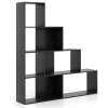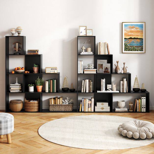 4-Tier Modern Stepped Bookshelf with 6 Storage Cubes for Living Room-Black