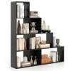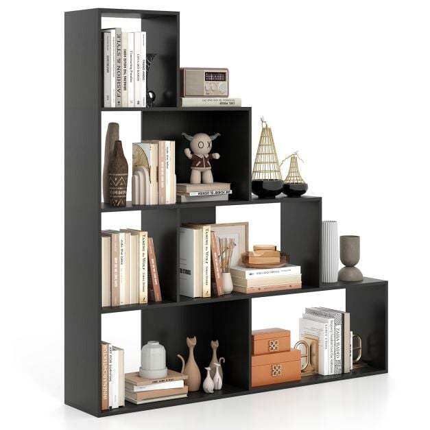 ● Unique Stepped Design: This modern bookcase mimics the look of stairs, creating a visually appealing and functional piece for displaying items. The geometric look and clean lines also embellish interior decorations and add a different flair to any space.