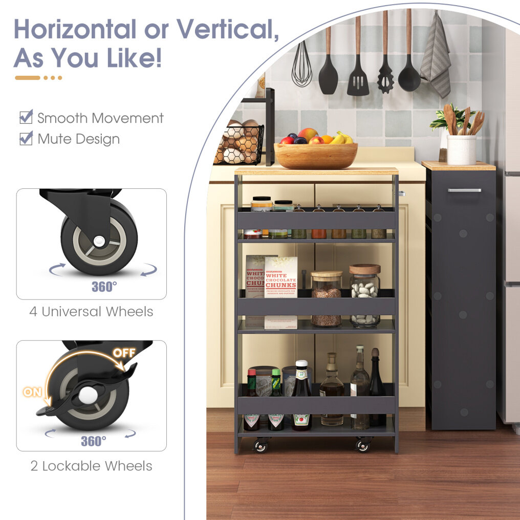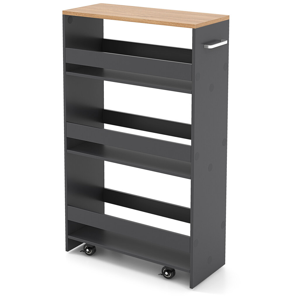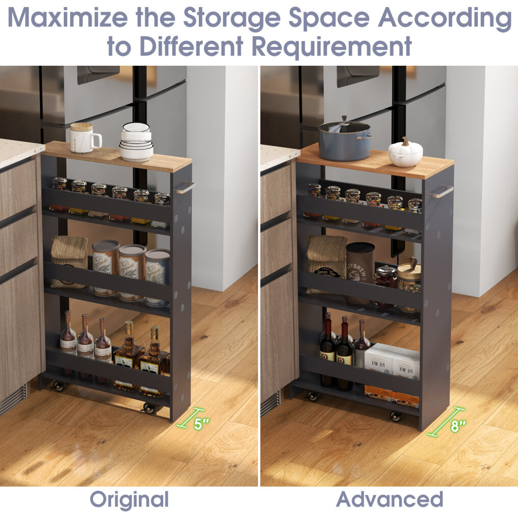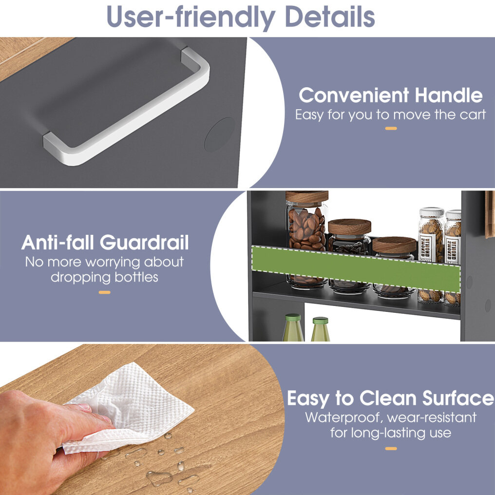 ● Varied Shelf Heights for Smart Organization: Treat your belongings to dedicated spaces on shelves of different heights, complete with guardrails that prevent spills or toppling items. This versatile cart easily holds cans, condiments and drinks of varied heights.