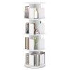 ● Well-crafted Details: Each tier is equipped with rounded baffles to prevent items from falling off during rotation. The base of the bookshelf tower is fitted with non-slip foot pads, providing added stability and reducing the risk of scratches on the floor.